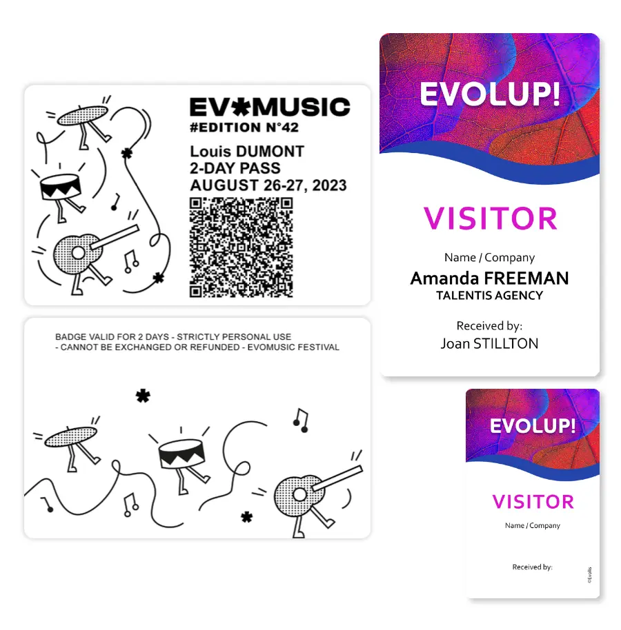 Bạn có thể in lại thẻ nhiều lần trong ngày nếu cần. Ví dụ, bạn có thể thêm mã QR hoặc mã vạch để tích hợp hệ thống kiểm soát ra vào với chi phí thấp hơn.